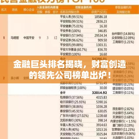 随着全球经济的不断发展和金融市场的日益繁荣,金融收入公司排名成为了人们关注的焦点,这些排名不仅反映了各金融公司在市场上的竞争力,也揭示了财富创造的巨头,本文将为您详细解读金融收入公司排名背后的故事,探究这些巨头如何创造财富。