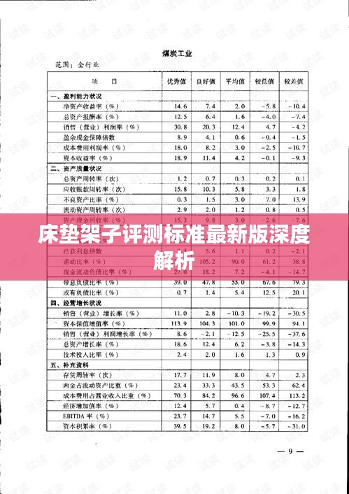 随着家居行业的快速发展,床垫架子作为睡眠环境的重要组成部分,其性能和质量越来越受到消费者关注,为了引导消费者科学选购,确保床垫架子的质量,最新版床垫架子评测标准应运而生,本文将详细介绍这一评测标准的内容及其重要性。