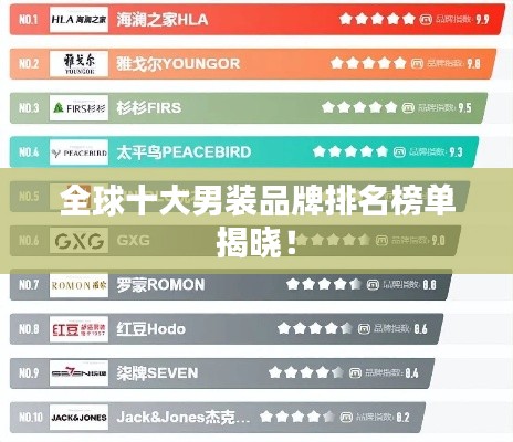 这些排名前十的成套品牌男装在设计、质量、风格等方面都有着出色的表现,消费者可以根据自己的需求和喜好进行选择,选购到适合自己的男装,随着市场的不断发展,这些品牌将继续为消费者带来更多优质的产品和服务。